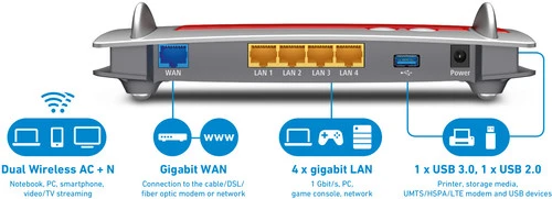 In tegenstelling tot andere varianten van FRITZ!Box heeft deze router geen ingebouwde modem.