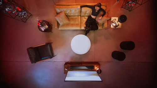 Je hoort ruimtelijk geluid dankzij Dolby Atmos, omdat het via het plafond en de muren naar jouw zitplek kaatst.