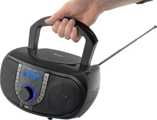 Met de Caliber HBC433DAB-BT luister je naar je favoriete radio stations in hoge kwaliteit. De radio beschikt over een DAB+ tuner, waardoor je naar digitale radio luistert. Doordat het signaal digitaal is, hoor je geen ruis. Ben je klaar met radio luisteren? Je streamt je afspeellijsten draadloos via bluetooth, verbind je telefoon via de aux aansluiting of sluit een usb stick aan. Dankzij de cd speler luister je naar jouw favoriete cd’s. Naast netstroom werkt de radio op 6 batterijen, waardoor je hem overal mee naartoe neemt. Je bedient de radio via de knoppen aan de voorkant.