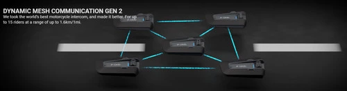 De verbinding valt niet weg als 1 rijder de groep verlaat dankzij het Mesh netwerk, wat bij bluetooth wel het geval is.