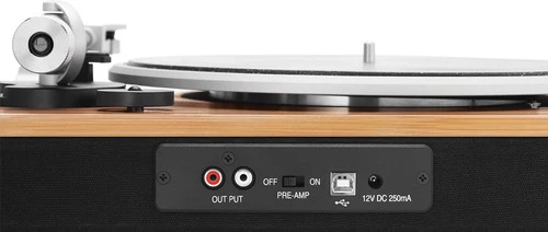 De platenspeler heeft geen ingebouwde speakers.